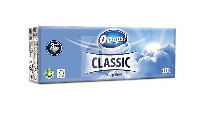 Papiertaschentücher, 3-lagig, 10x10 Stück, OOOPS „Classic“, Sensitive Packung