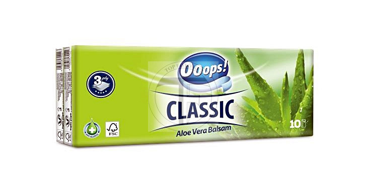 Papiertaschentücher, 3-lagig, 10x10 Stück, OOOPS „Classic“, Aloe Vera Packung