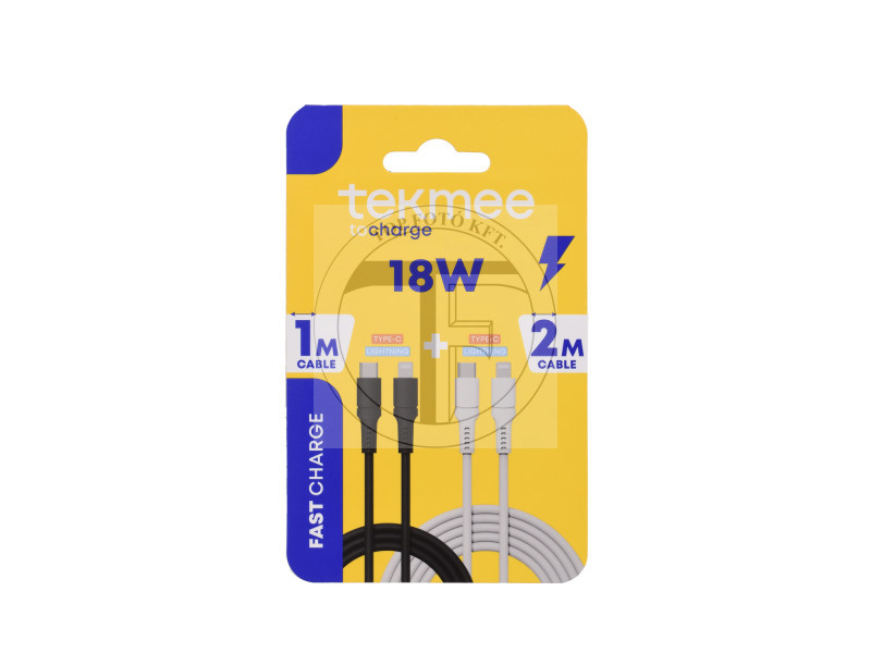 Tekmee 2db-os Gyorstöltő kábel 1m/2m - Lightning (iPhone) / Type-C - 18W