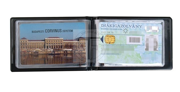 IgazolványtartóMéret: 98x70 mmAnyaga: PVC- igazolványok tárolására alkalmas- 6 db átlátszó belső zsebbel- márványos borítólapok- méret: 108 x 72 mm